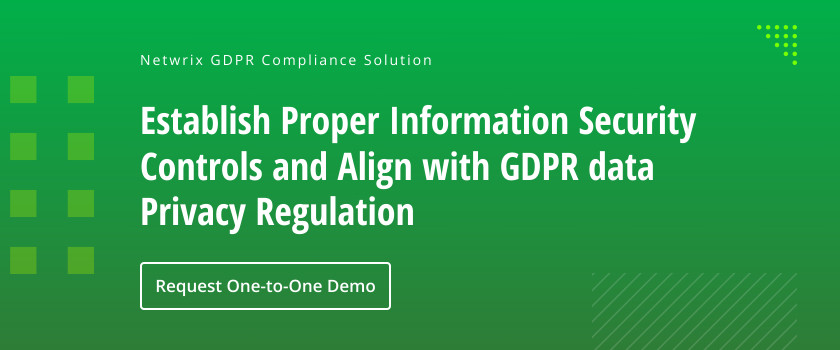 Our team of experts has a solid understanding of not just the GDPR but the California Consumer Privacy Act (CCPA) and many other data security regulations. They provide organizations with tailored, focused advice to meet their compliance needs. To learn more, sign up for a demo or download a mapping of GDPR requirements and Netwrix functionality.